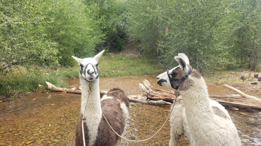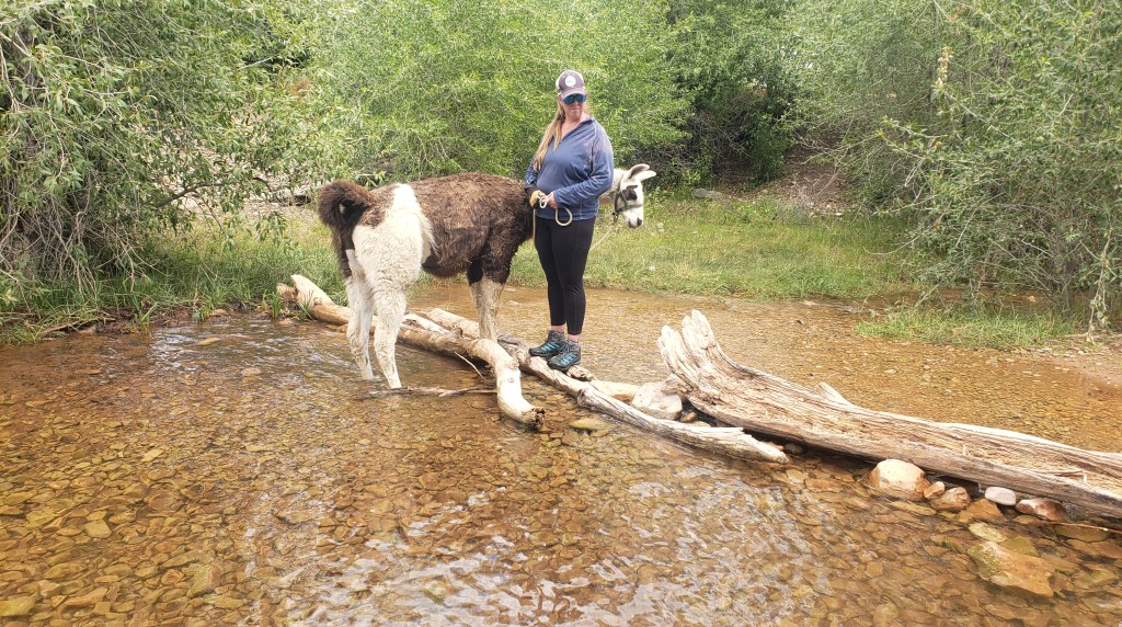 We had some trainees up the canyon for water training this weekend. Smoky really loves the water more than any llama we have had. All did really well though.